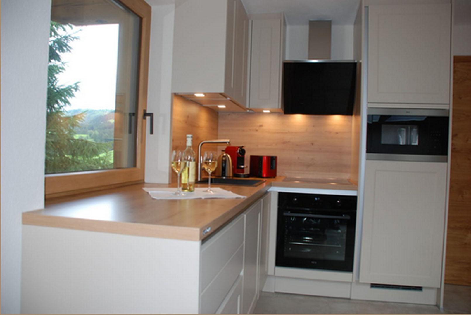 Ausstattung: Boxspringbett, Ausziehcouch -Sitzgelegenheit und Tisch, Schrank, Panasonic 55 " Smart-TV, Badezimmer m. Dusche u. Haarföhn ,WC- Papier, Bettwäsche und Handtücher sowie eine Mini-Küche, Kühlschrank, Geschirr, Gläser, Besteck , 2 Herdplatten, Wasserkocher, Nespresso Kaffeemaschine, Toaster, Abtropftasse und Spülmittel